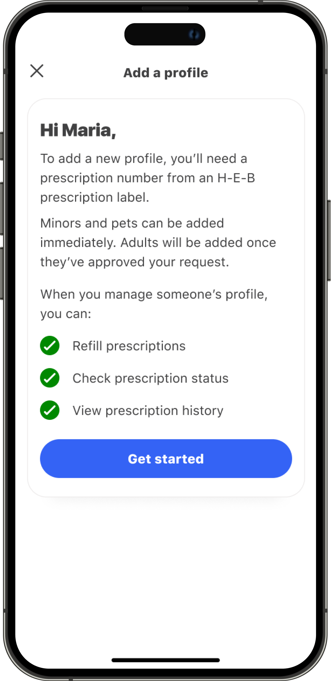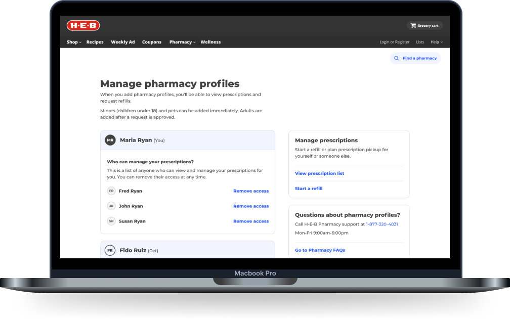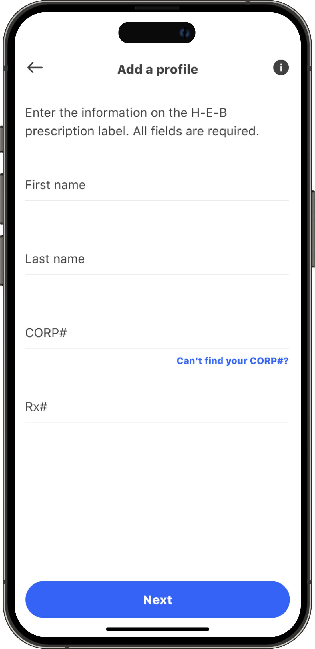 We use a set of information approved by pharmacy legal and digital security to identify customer profiles with H-E-B Pharmacy. All the information can be found on customer's prescription bottle labels.
