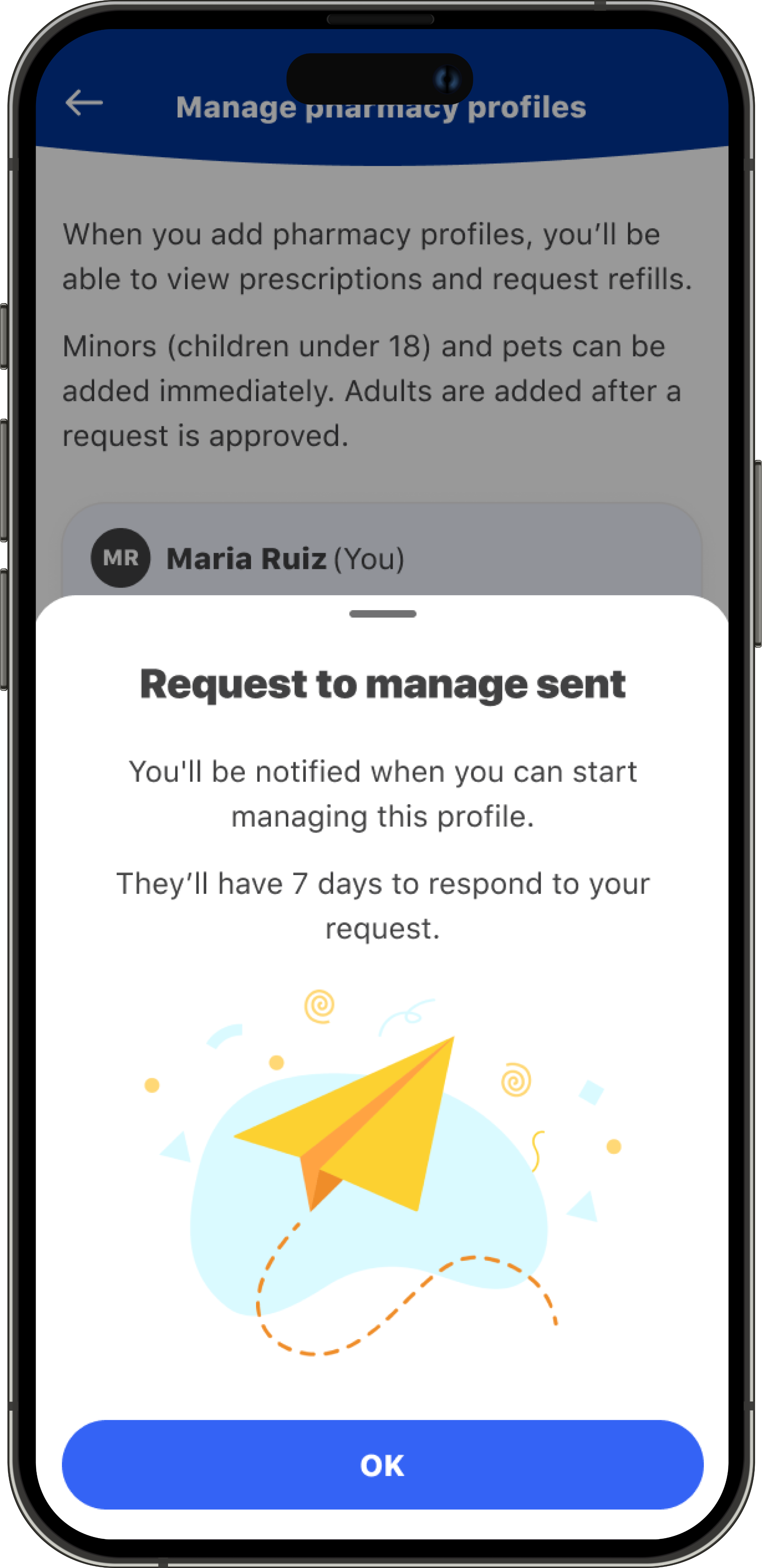 "Management" is defined as a primary account holder (an adult with an account) connecting their profile to that of another profile that they have prescription information for. The types of accounts that can be connected to are other adults as well as minors and pets.
