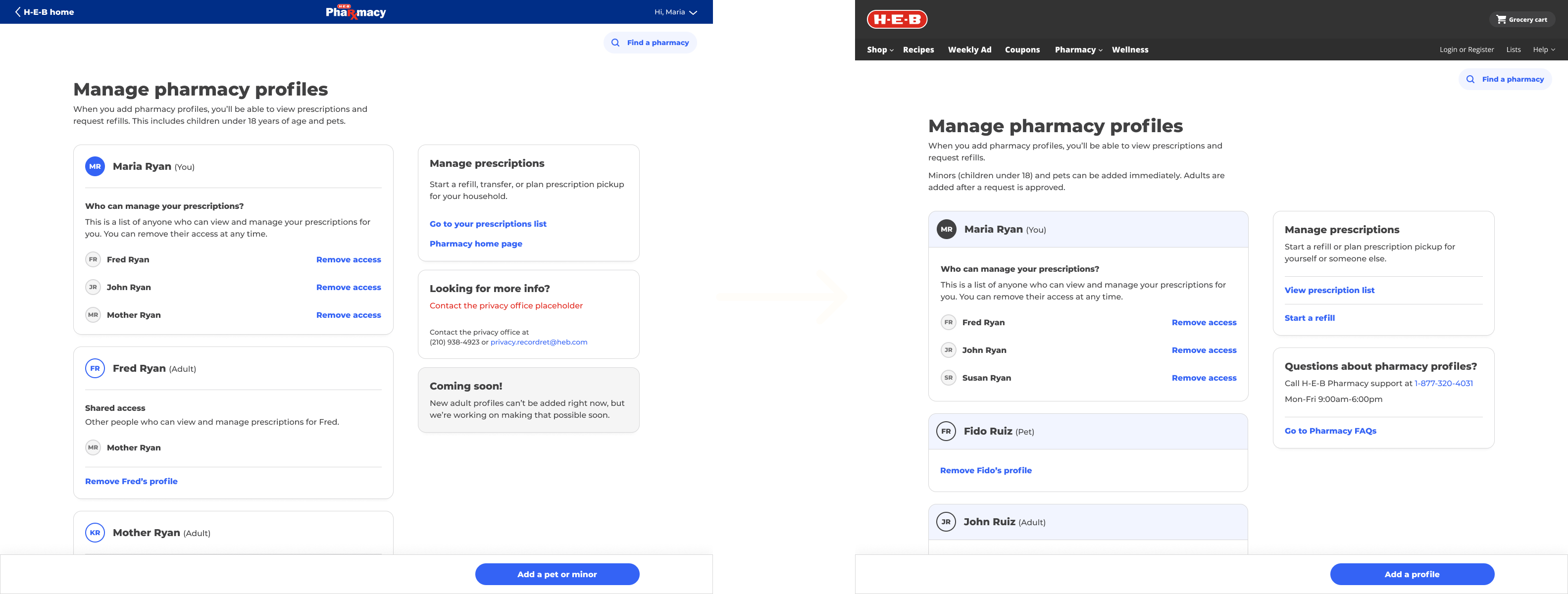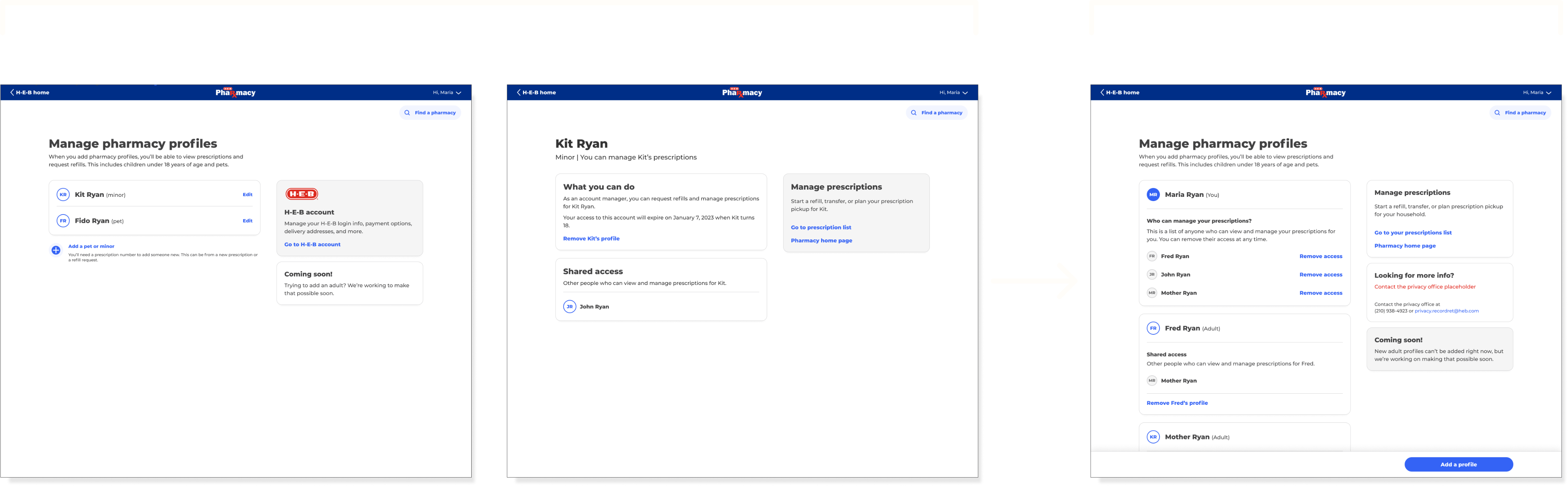 In order to comply with HIPPA, pharmacy regulations, and protect customer's PHI (protected health information) our design team regularly meets with both the pharmacy privacy office and digital security team.