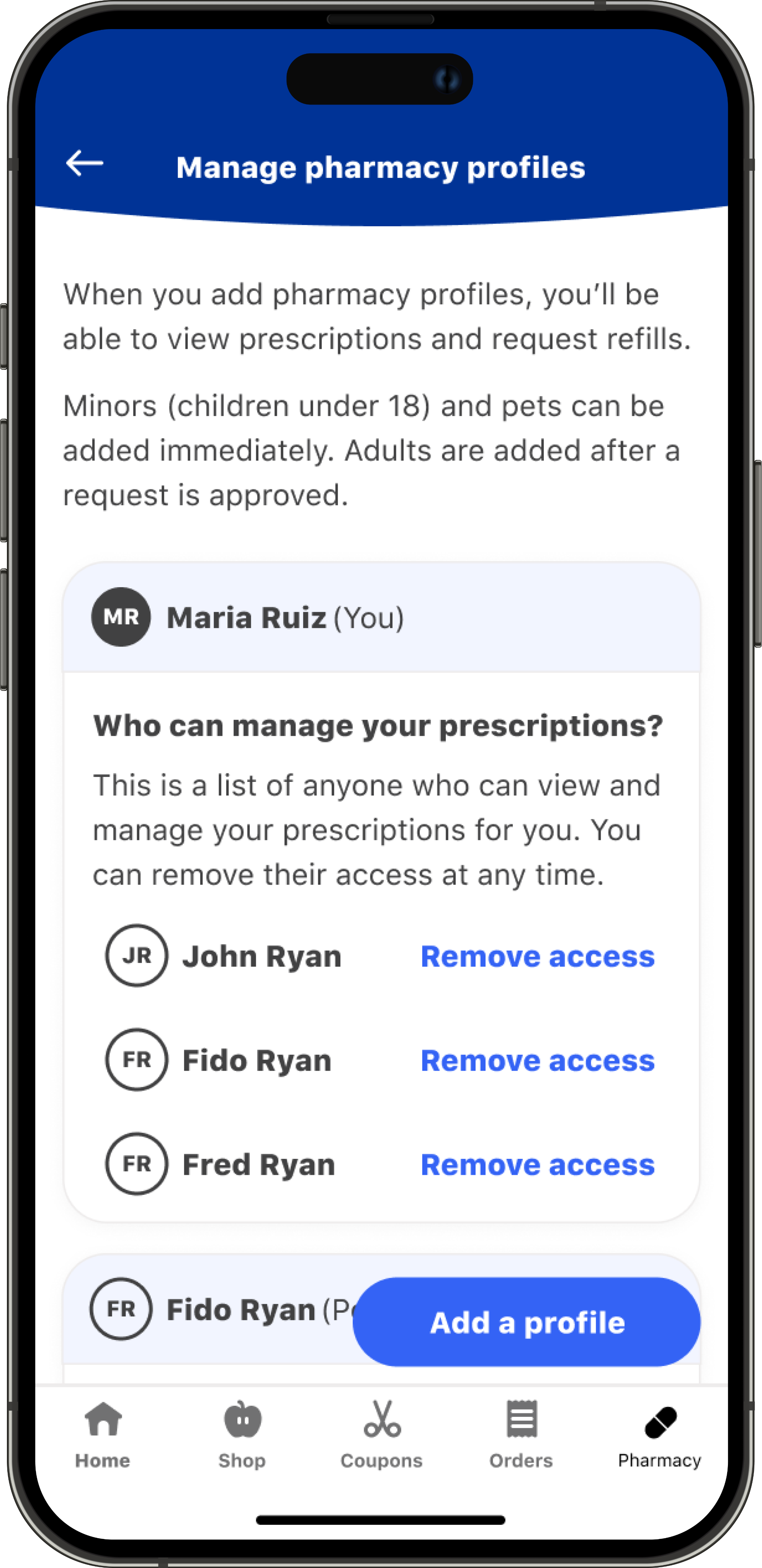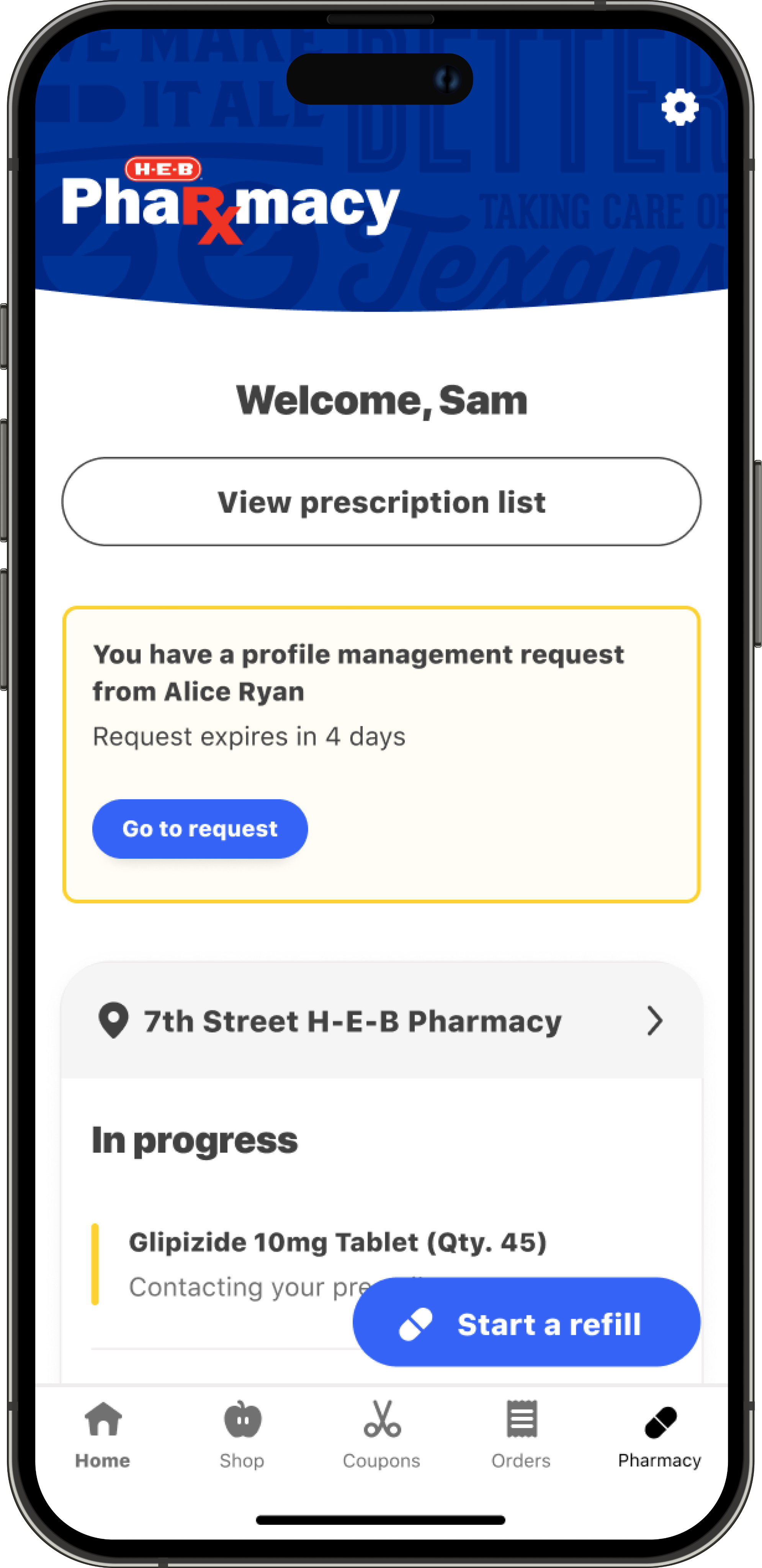 Caregivers and parents need the ability to manage the medical care of their loved ones, which includes picking up and refilling medications.
