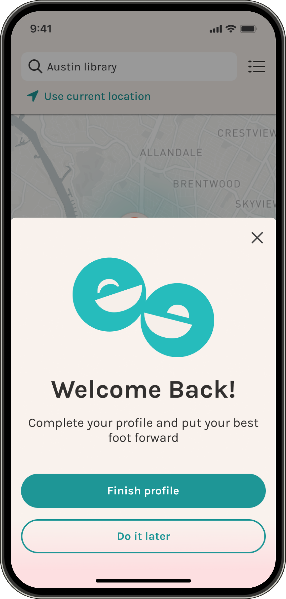 Implementation of the brand and design system on an MVP version of the app. Used to give the clients a vision of what could be built out with developers.
